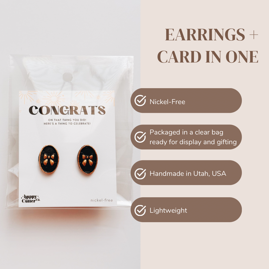 Add a pop of sparkle to your holiday look with these red glitter bow stud earrings! Perfectly festive and lightweight, they’re an easy way to bring a little cheer to everyday holiday outfits or Christmas party looks. D E T A I L S - Nickel free earring posts - Handmade from polymer clay - Lightweight - All earrings will arrive secured on an individual earring card and inside a clear protective bag. H A N D C R A F T E D - Our earrings are handmade in our studio in Utah, USA. Due to this there may be slight variations in color or pattern.